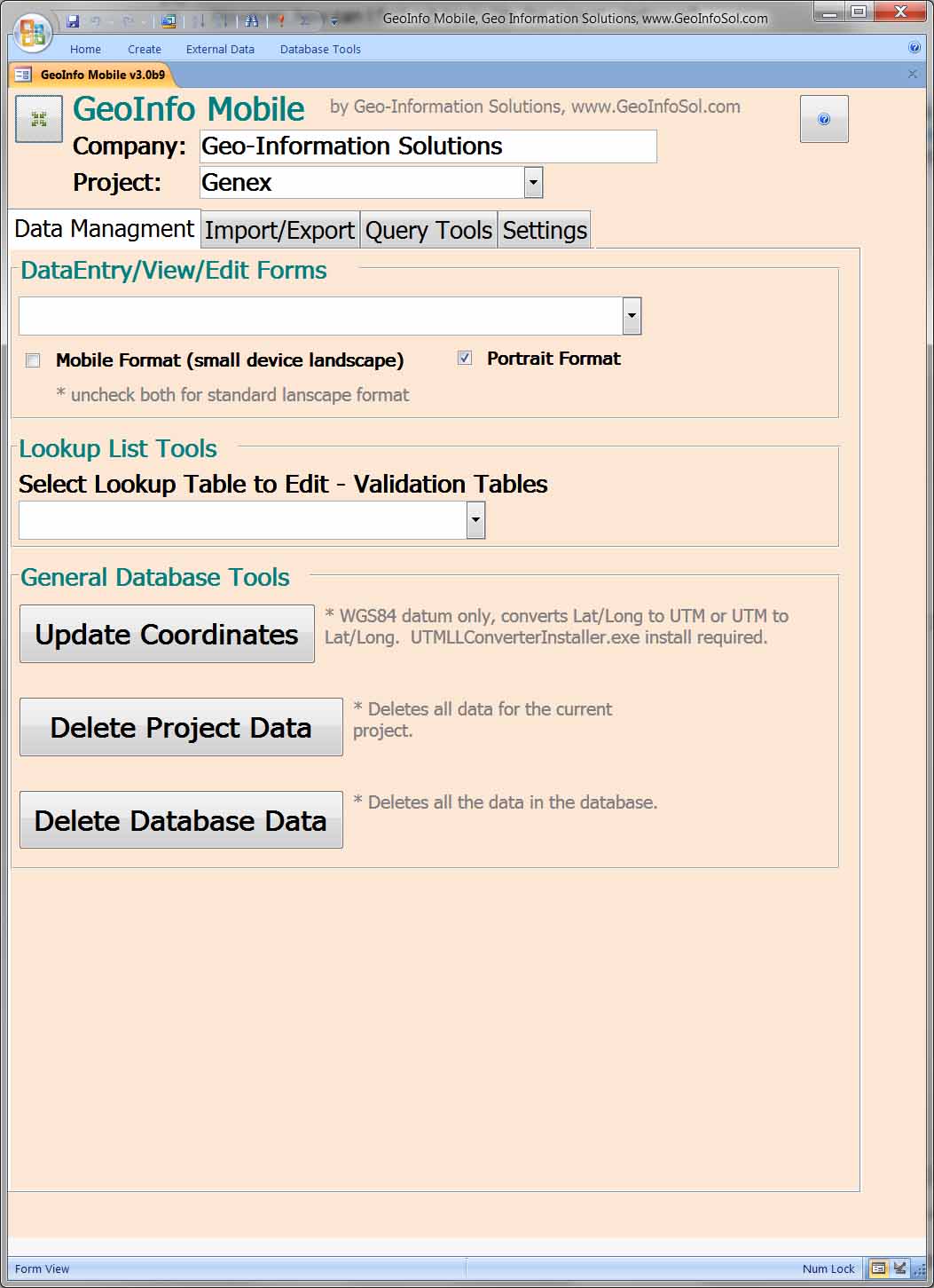 GeoInfo Mobile is fully integrated with GeoInfo Tools, a corporate database solution for the mining and mineral exploration industries, http://www.geoinfosol.com/PCSoftware/GeoInfoToolsDatabase.htm. GeoInfo Mobile is a stand alone data collection app for geologists and data collectors, however it is also a data collection app for GeoInfo Tools users. GeoInfo Mobile imports pick lists managed by GeoInfo Tools to provide business rules in the field, and exports collected data for easy import into GeoInfo Tools.