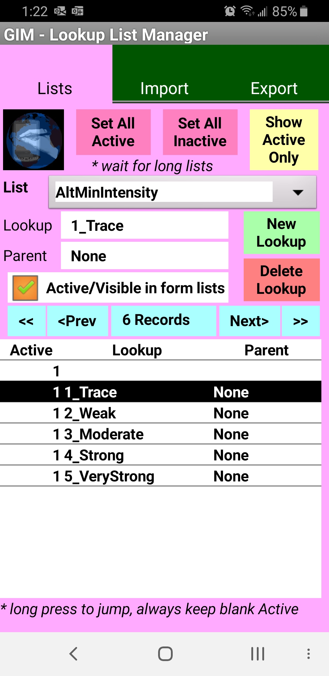 GeoInfo Mobile Lookup List Manager