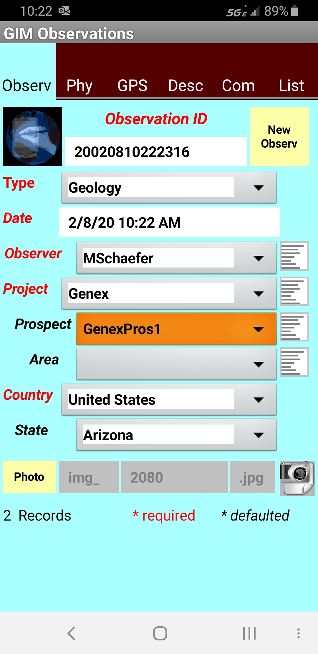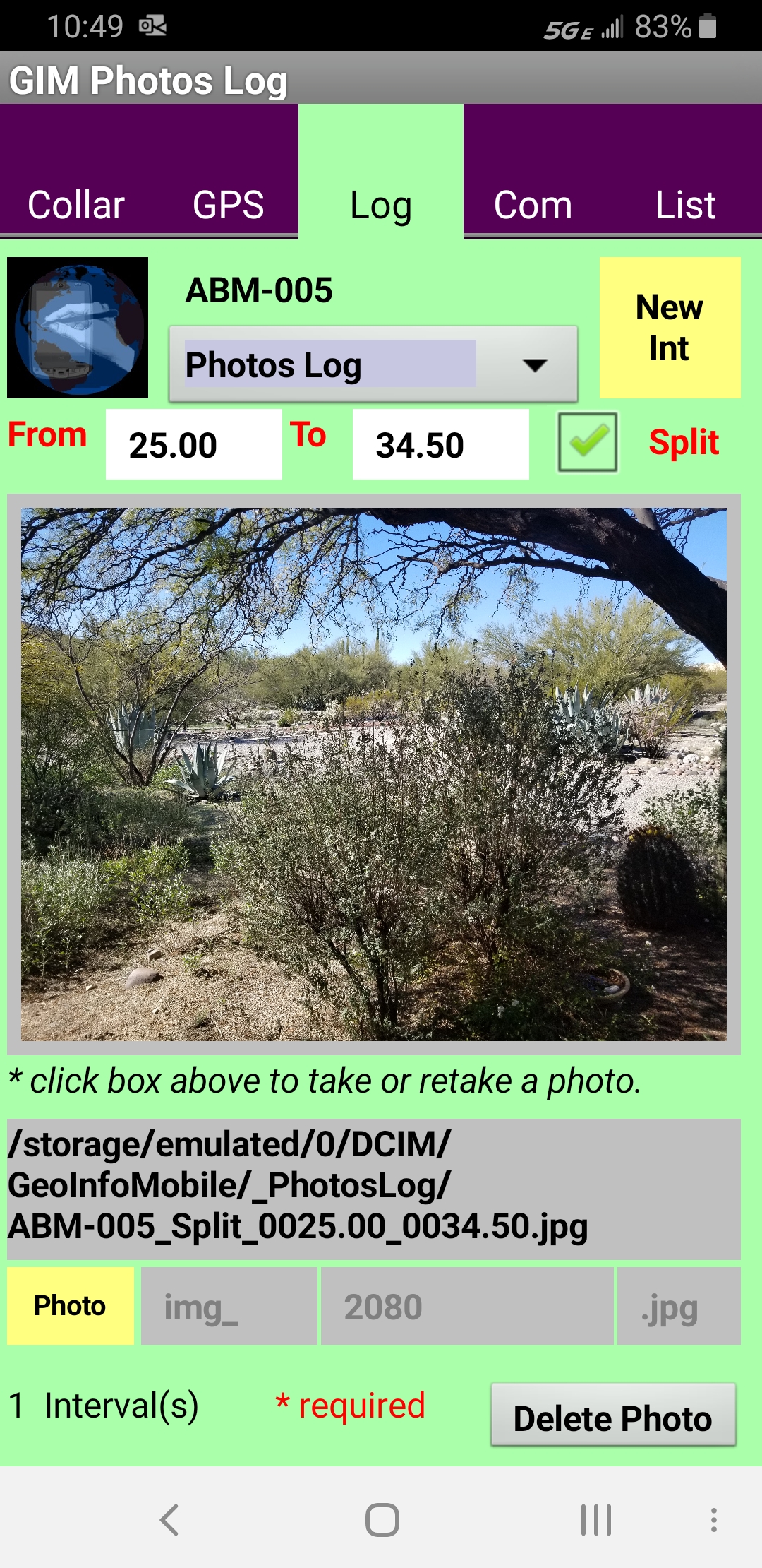 the current photo number, GeoInfo Mobile