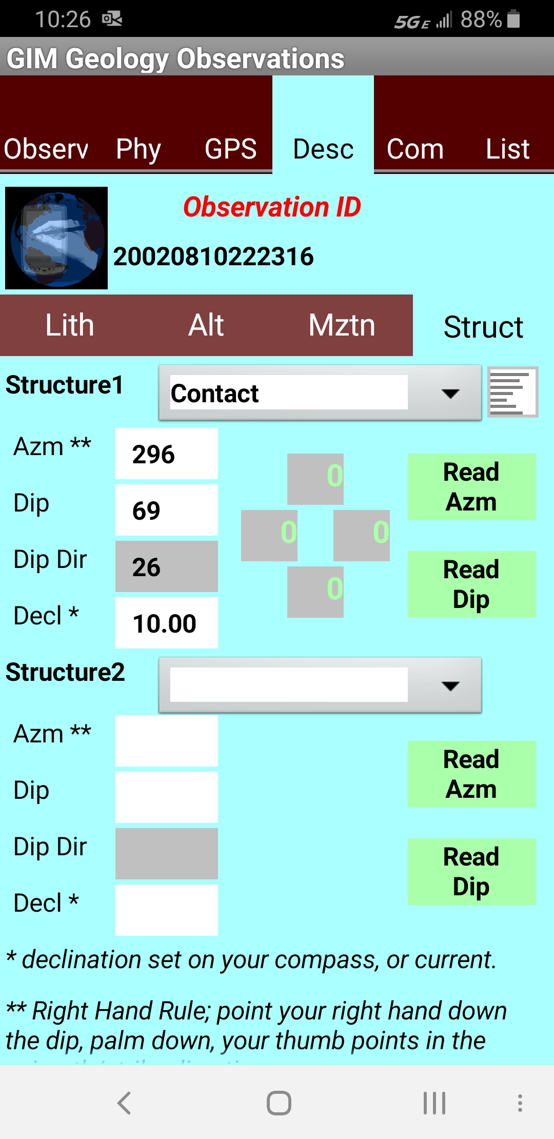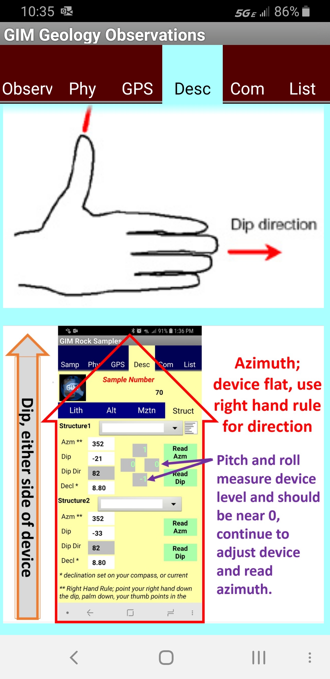 Dip measurements.